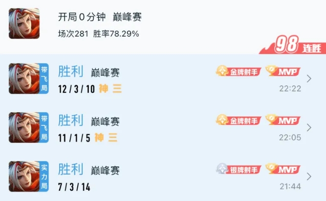主玩戈娅几乎把把C,98连胜目前还没断,什么水平?