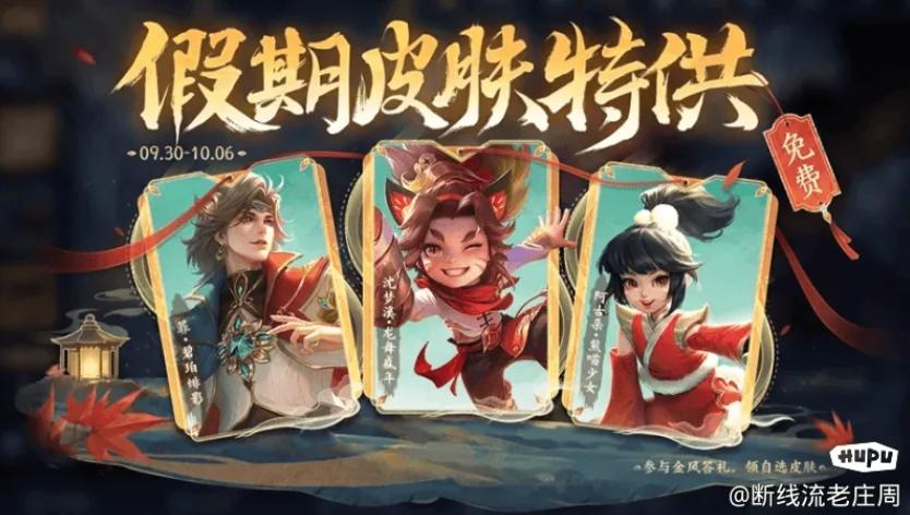 国庆皮肤雨,免费皮肤3选1,6款限定皮肤免费体验
