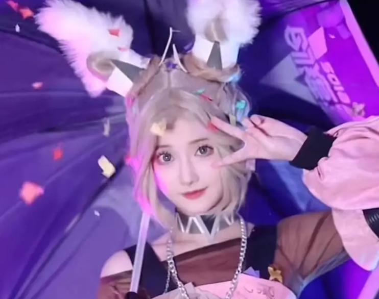 解说琪琪COS公孙离,身穿粉红丝袜,手拿紫色雨伞