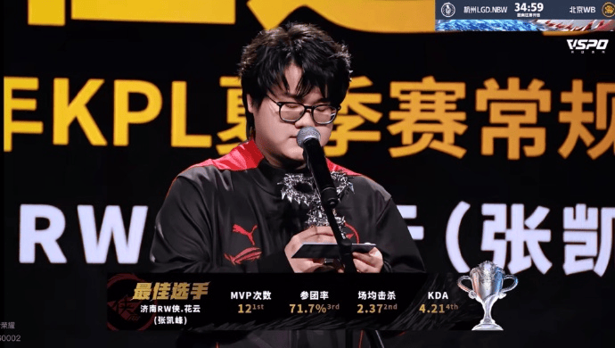 RW侠发文:恭喜花云获得2024KPL夏季赛常规赛MVP!