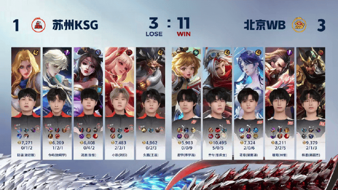 苏州KSG 1-3 北京WB,本场选手表现你打几分?