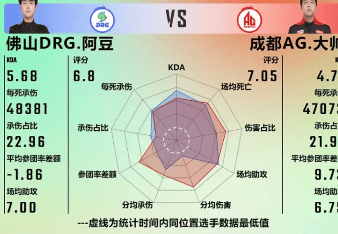 DRG 3-1 成都AG赛后雷达图,哪组对位差距最大?