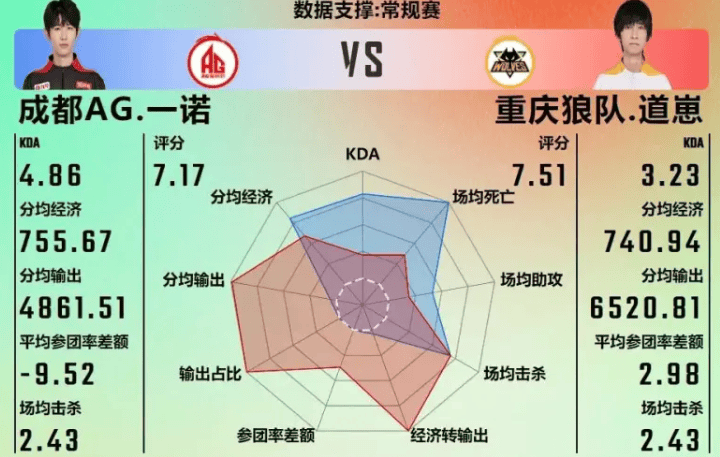 成都AG4-3重庆狼队赛后雷达图,哪组对位差距最大?