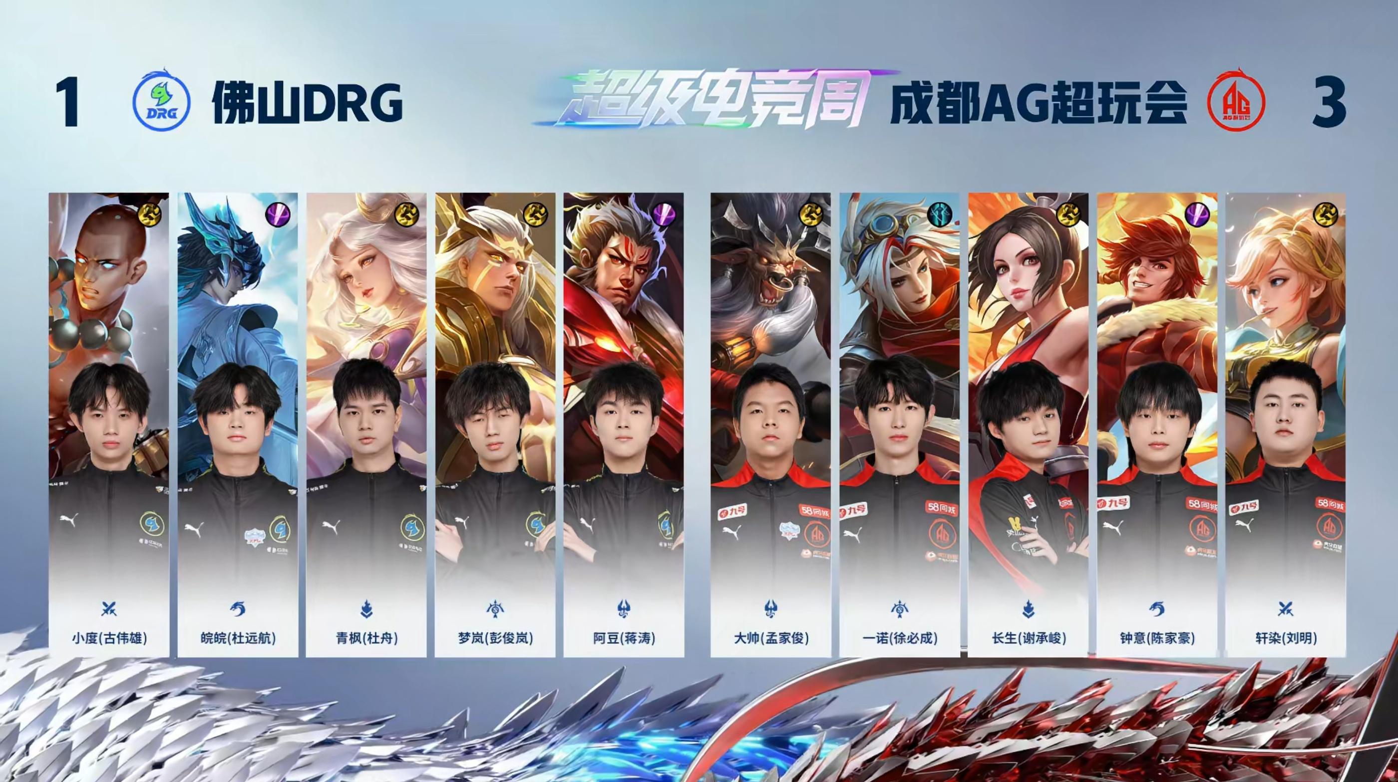 成都AG超玩会 4-1 佛山DRG,本场选手表现你打几分?