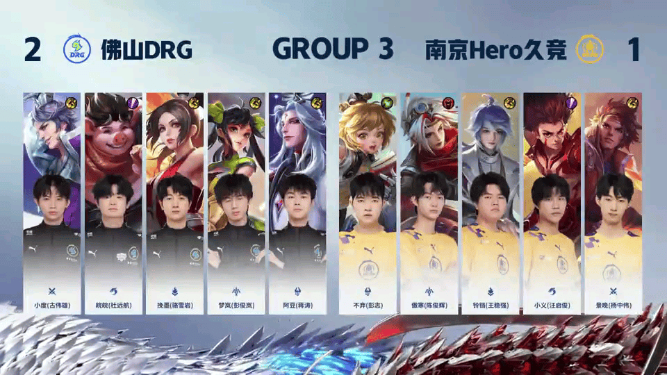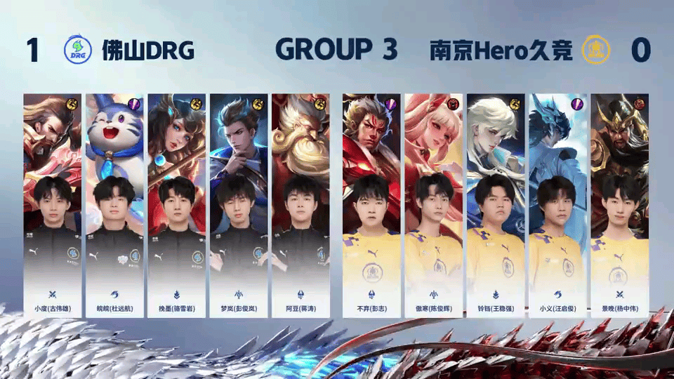 佛山DRG 1-1 南京Hero久竞,本场选手表现你打几分?