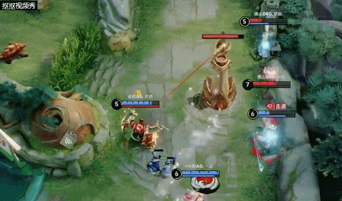 DRG越塔切黄忠被AG反打,AG击杀DRG中射野三人