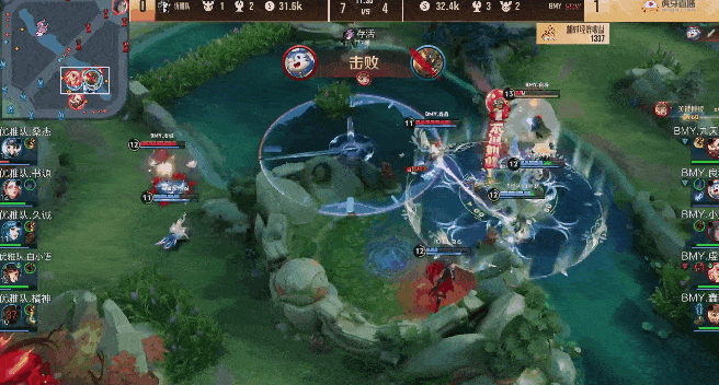 双方河道开团孙膑大招控四个,杨玉环二连击破,BMY打出3换4