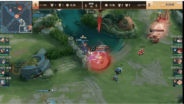 Hurt鲁大一闪开团射辅,但BMY反打明世隐击杀黄忠拿到一血