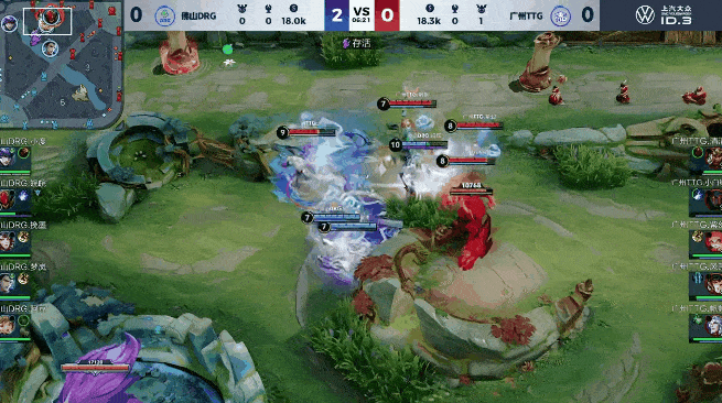 孙策撞到三人但被海月拉进幻境,出来后被击杀,DRG打出0换2
