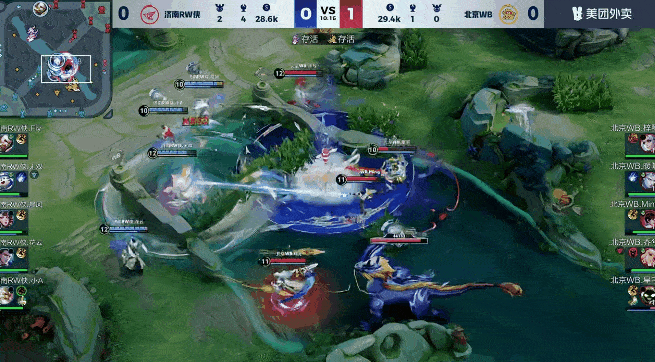 对抗路4打4,梓墨大司命先击杀凯拿到一血,最终RW打出1换2