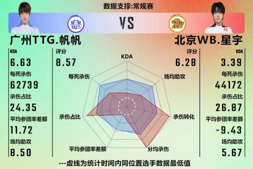 广州TTG4-2北京WB赛后雷达图,哪组对位差距最大?