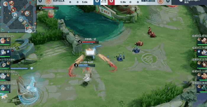 AG入侵到对面蓝区,TES.A边撤边打,AG打出1换2