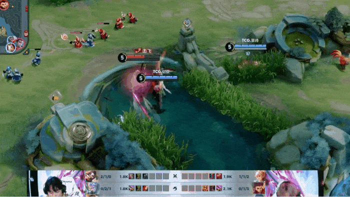 双方边路各显神通,中路混战中直切对方后排,各拿一个击杀