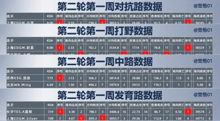 A组各位置数据排名,哪位选手的表现让你印象深刻?