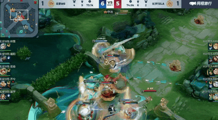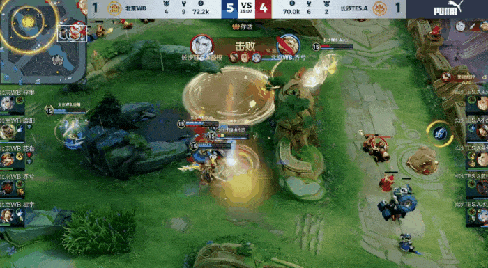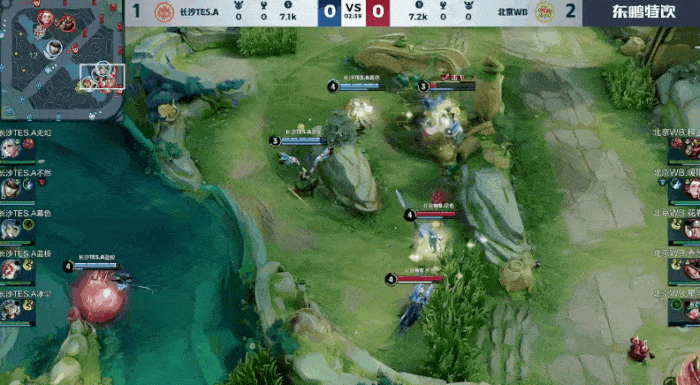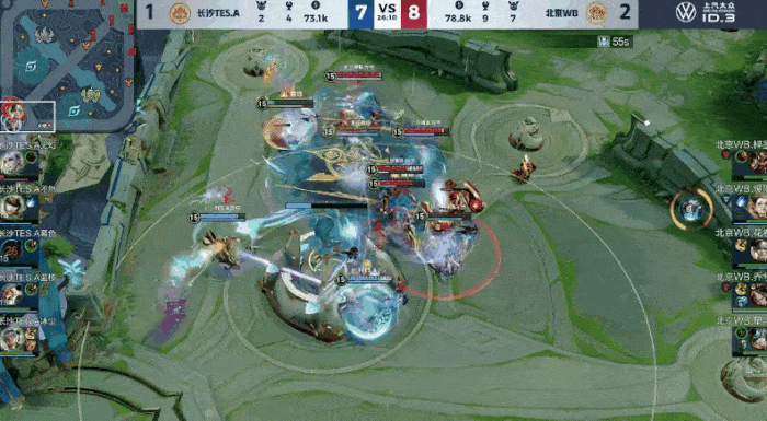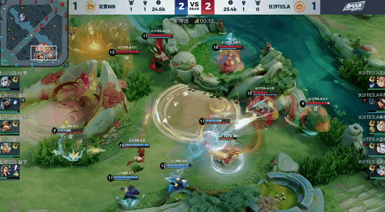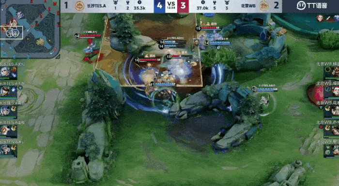 双方中路爆发团战乔兮后羿率先被秒,但随后WB击杀TES.A四人