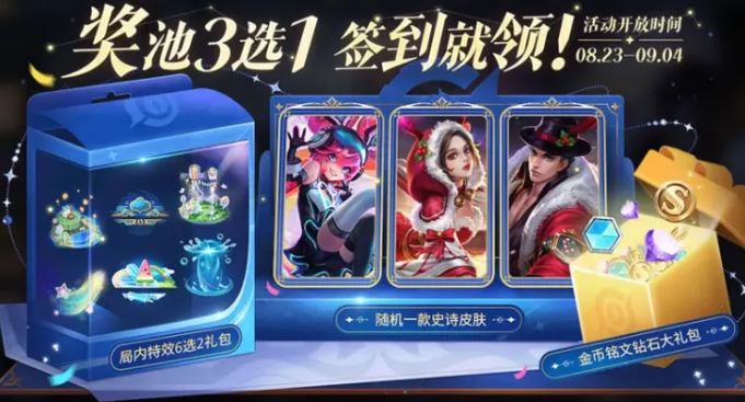 免费领史诗皮肤活动上架,奖励3选1,签到12天即可领取