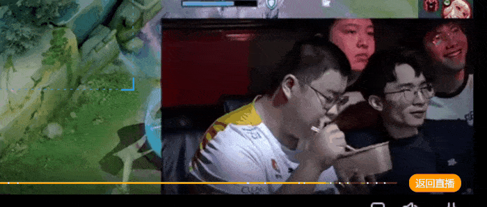 双方队伍比赛之际,小胖观众席努力干饭ing