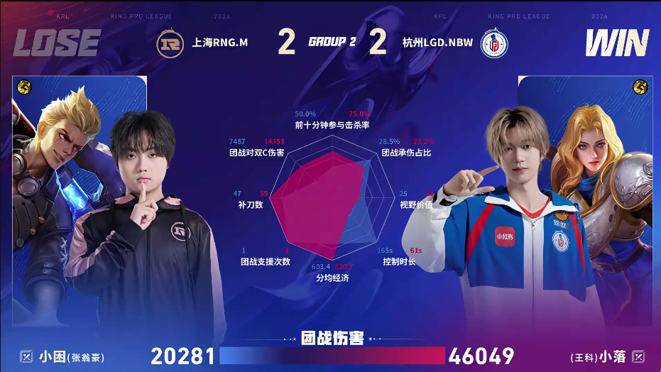 LGD.NBW/RNG.M第四局数据图:小落夏洛特团战伤害四万多