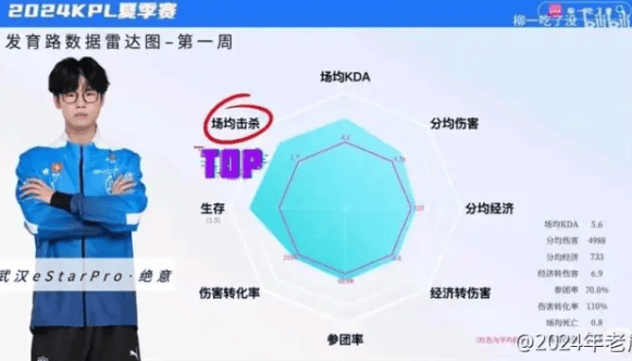 夏季赛第一周发育路雷达图:决意、妖刀、道崽发挥出色