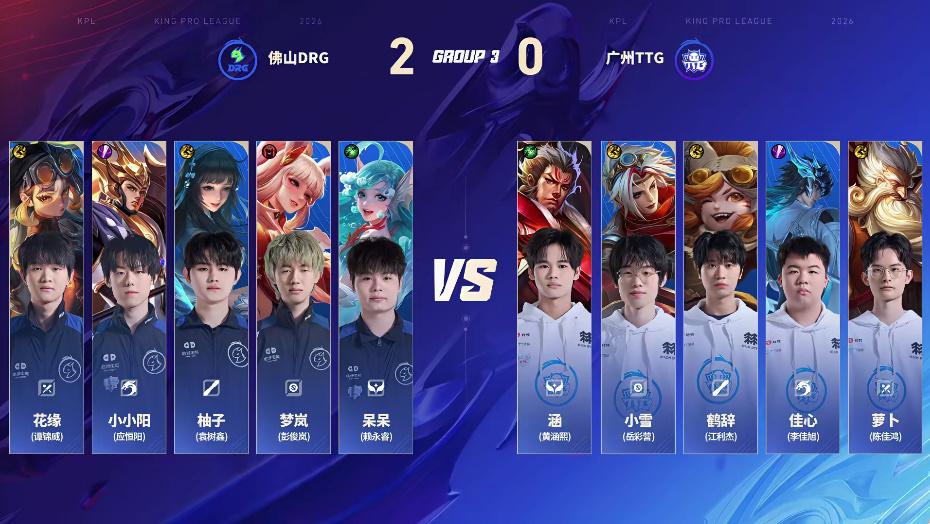 佛山DRG 2-3 广州TTG,本场选手表现你打几分?