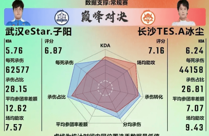 武汉ES 4-3长沙滔搏赛后雷达图,哪组对位差距最大?