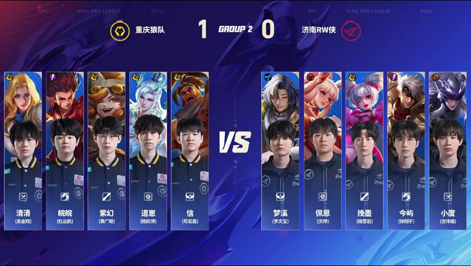济南RW侠 0-2 重庆狼队,本场选手表现你打几分?