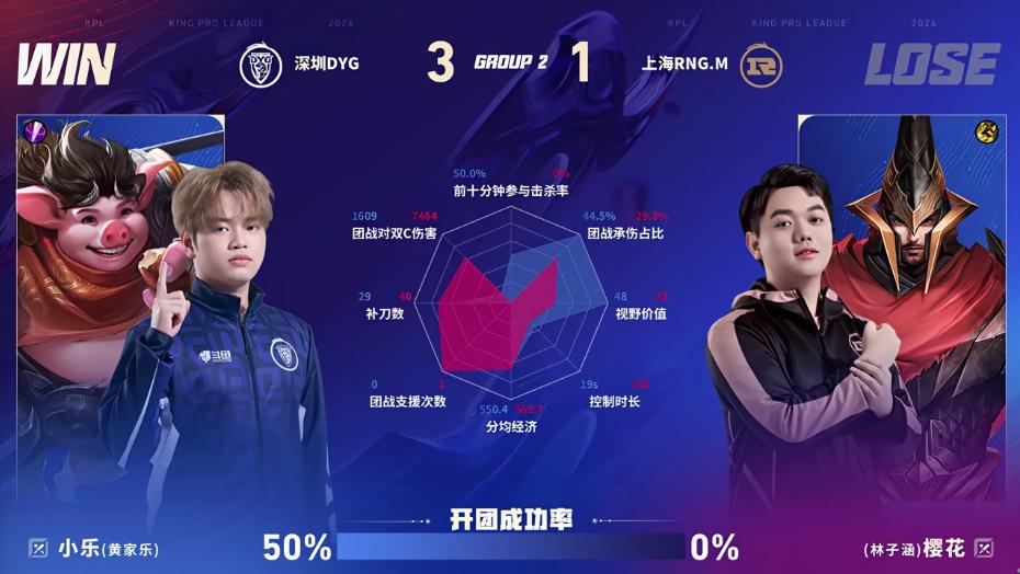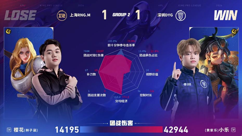 DYG/RNG.M第二局数据图:小乐蚩姹多项数据拉满团战伤害四万