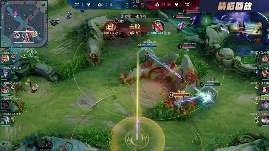 中左草DYG三人挤视野留下不知火舞,向鱼沈梦溪收下一血