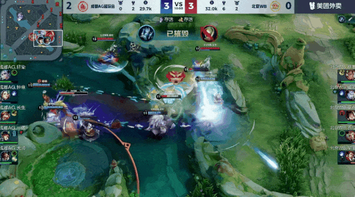 WB团战失利逐个掉点,AG众人带着兵线点掉水晶