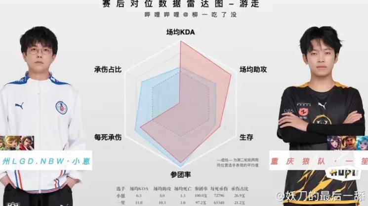 重庆狼队3-0杭州LGD赛后雷达图,哪组对位差距最大?