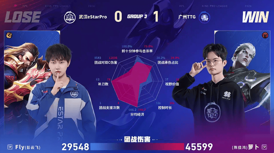 TTG/eStar第一局数据对比:涵张飞开团成功率百分百