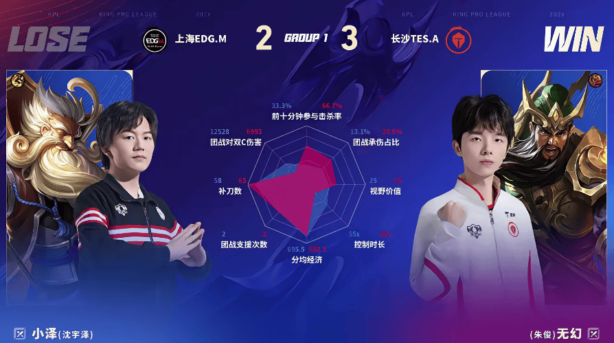 上海EDG.M 2-3 长沙TES.A,本场选手表现你打几分?