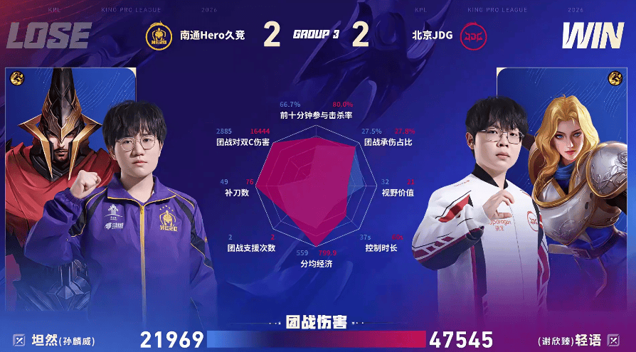 南通Hero久竞 1-1 北京JDG,本场选手表现你打几分?