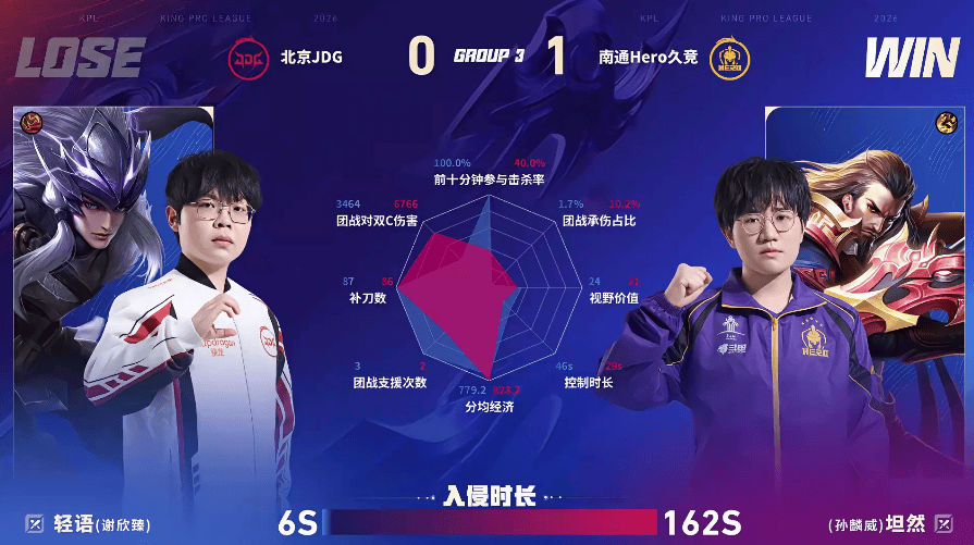JDG/Hero第四局数据对比:无畏苏烈支援成功率百分百