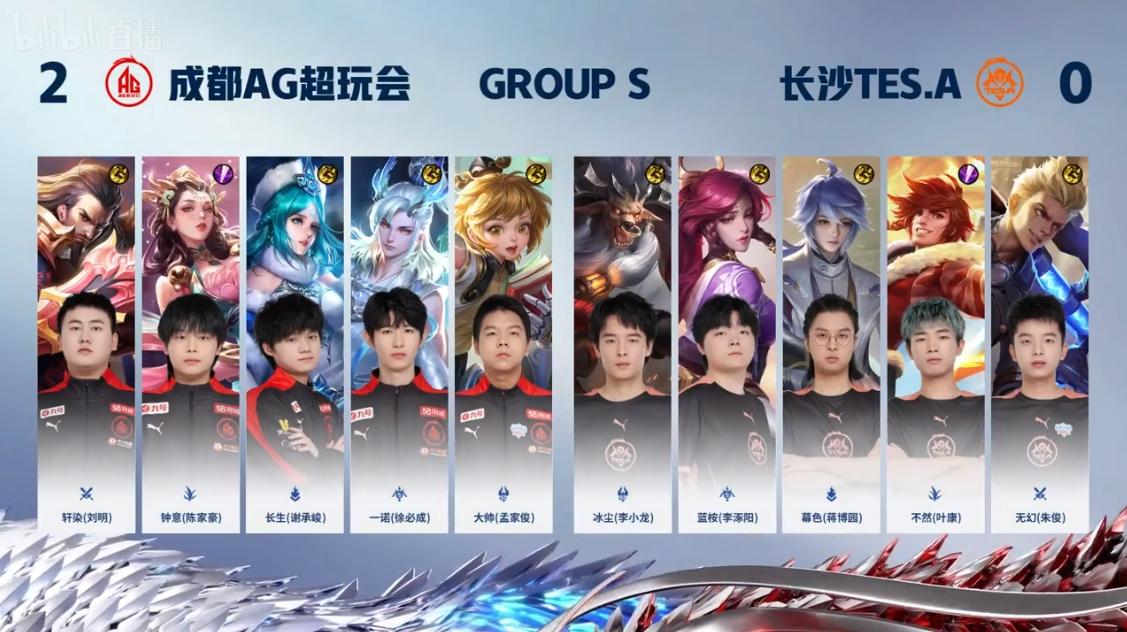 成都AG超玩会 2-0 长沙TES.A,本场选手表现你打几分?