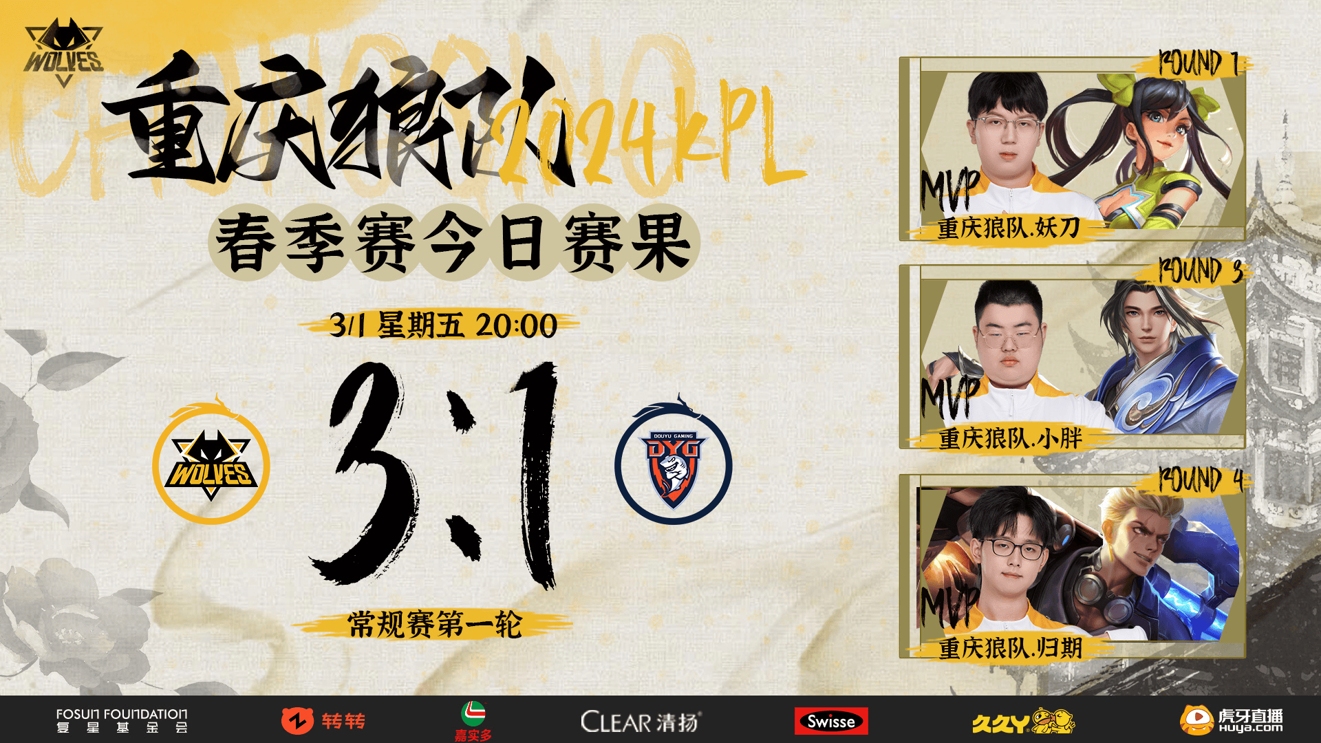 【赛果】2024KPL春季赛-重庆狼队 vs DYG