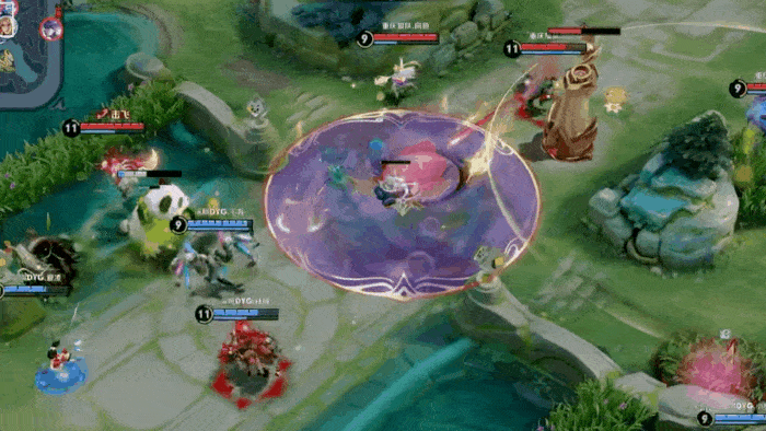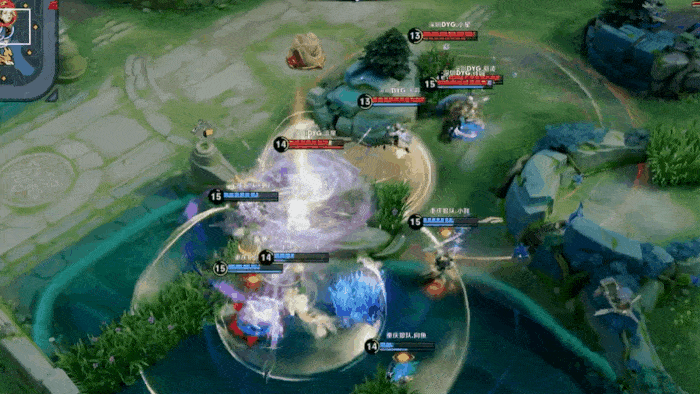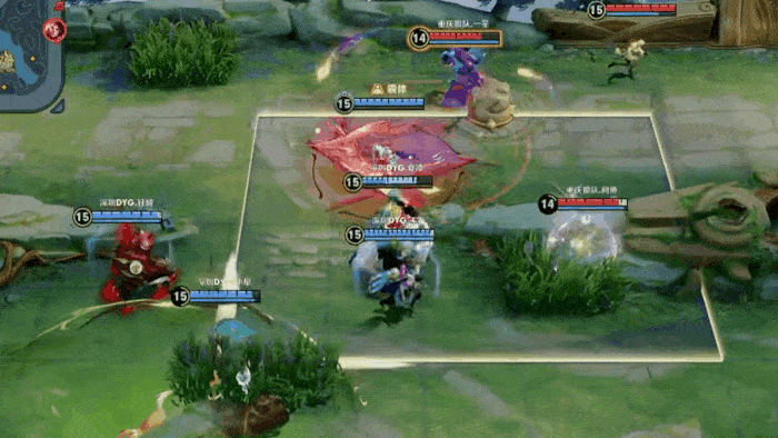 王昭君草丛蹲伏,被弈星大招框住,阿古朵上前完成击杀