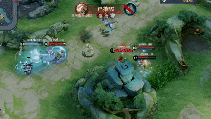 孙策庄周想要清掉兵线,但兵线剩一丝血,狼队顺利拿下比赛