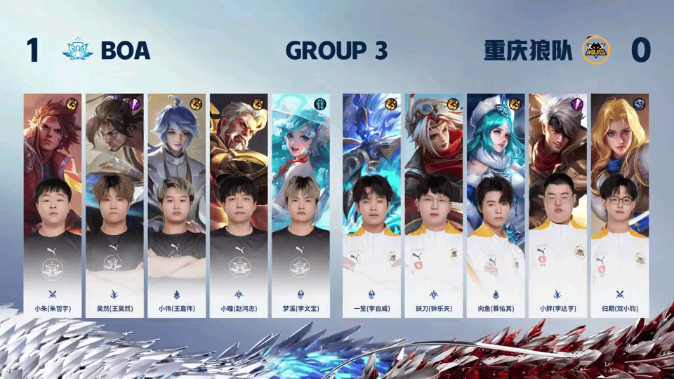 重庆狼队 2-1 BOA,本场选手表现你打几分?