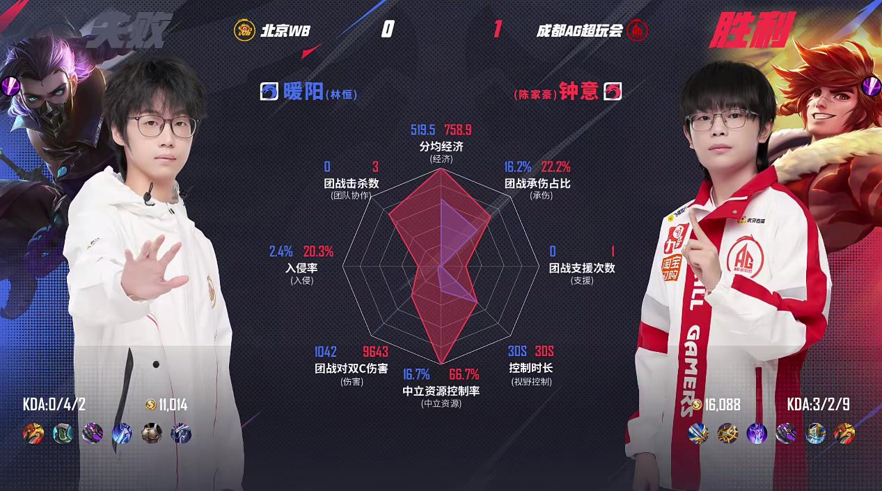 成都AG超玩会 1-0 北京WB,本场选手表现你打几分?