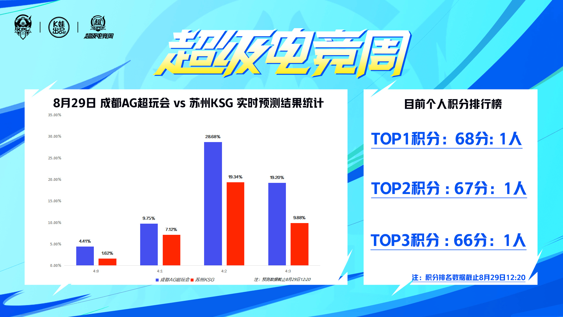 今日K妹大字报:成都AG超玩会、苏州KSG支持率五五开