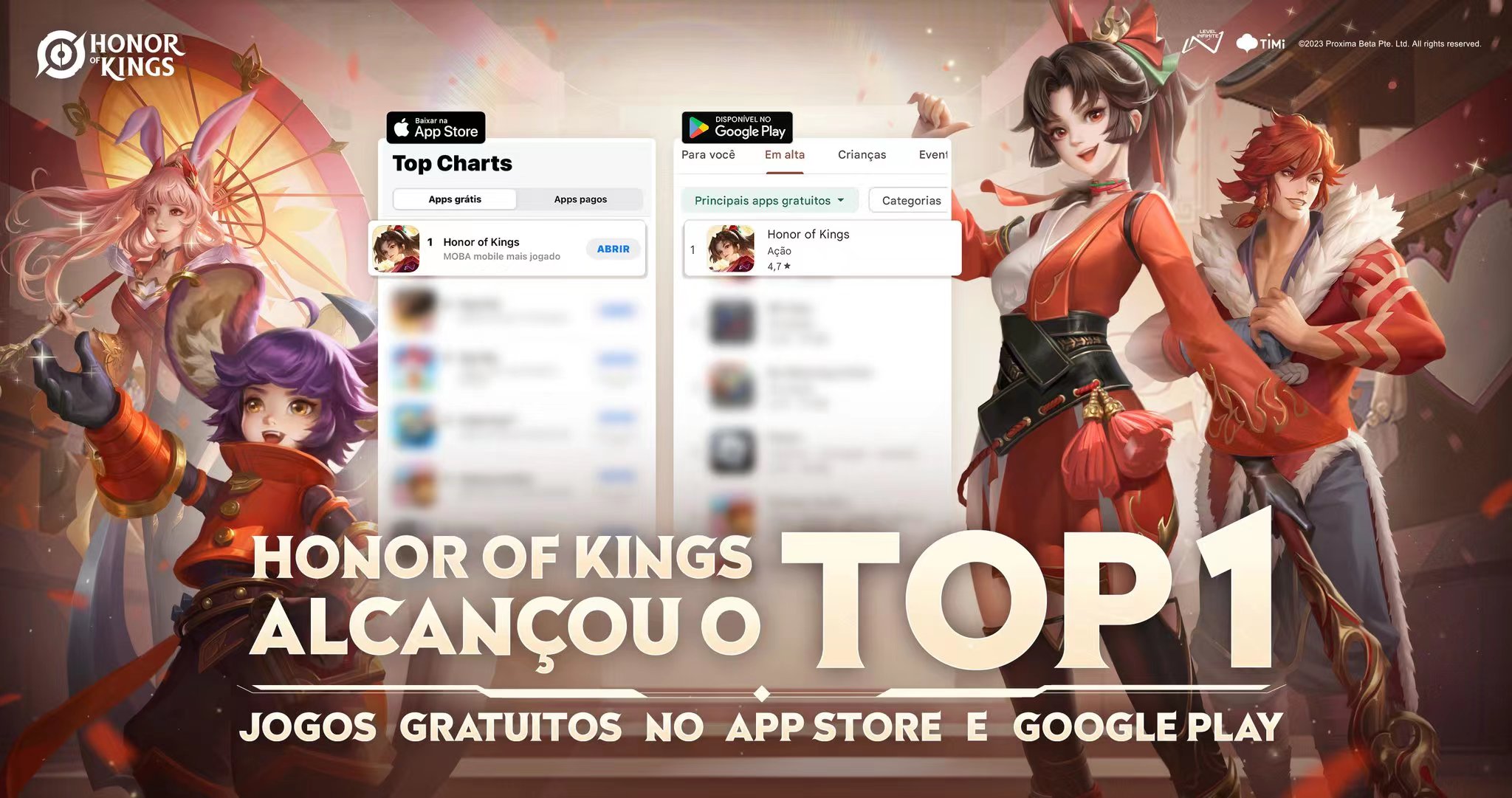 王者巴西官推发文:HOK登顶谷歌商店和苹果商店免费游戏榜一