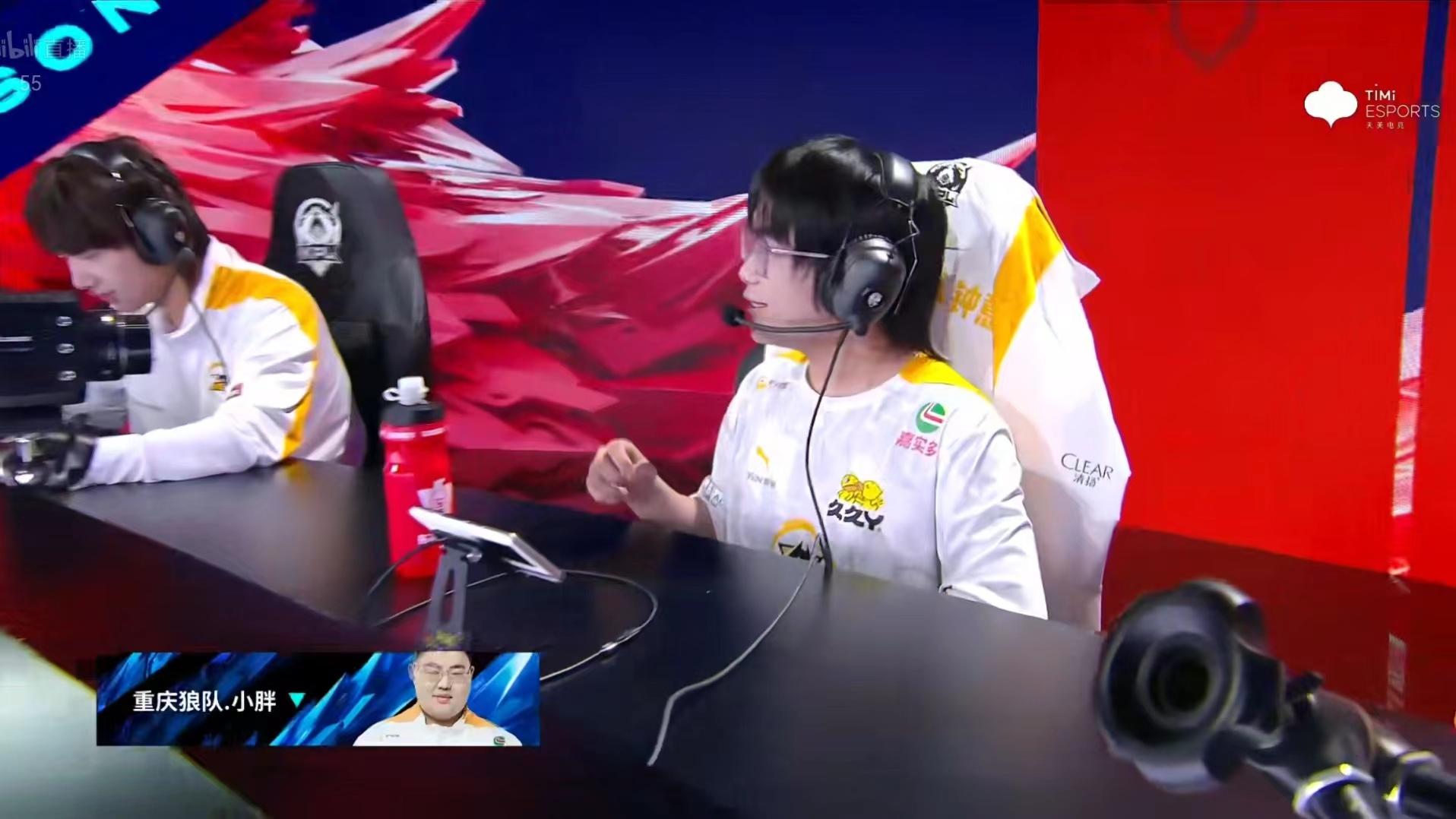 重庆狼队第三局做出换人调整,钟意替换小胖,一笙替换帆帆