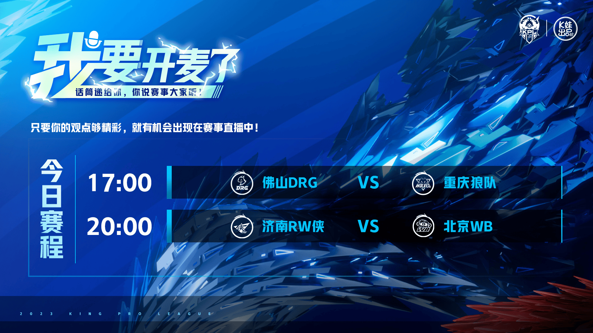 [今日首发]重庆狼队对阵佛山DRG,RW侠晨风首发对阵北京WB