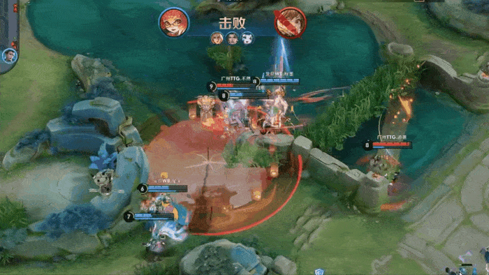 孙尚香赶到中路参团,先后击杀三人,完成团战收割