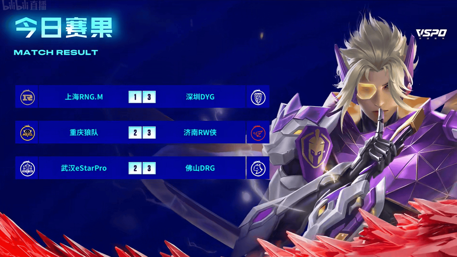[今日赛果]DRG战胜ES,RW侠战胜狼队,百兽领跑MVP榜