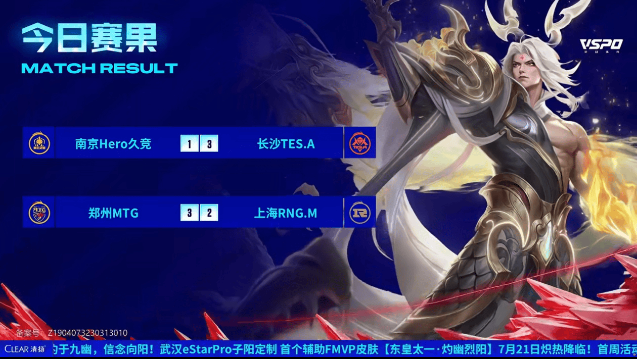 [今日赛果]长沙滔搏战胜南京Hero,RNGM不敌MTG无缘第三轮