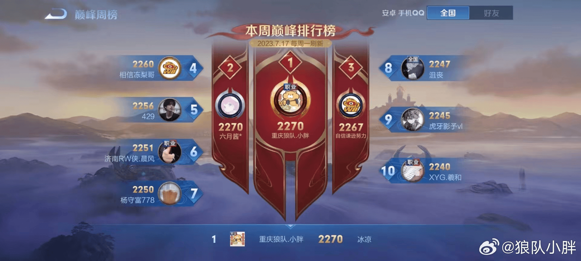 登顶巅峰赛第一,小胖发文:有天赋的应该是我,而不是19岁