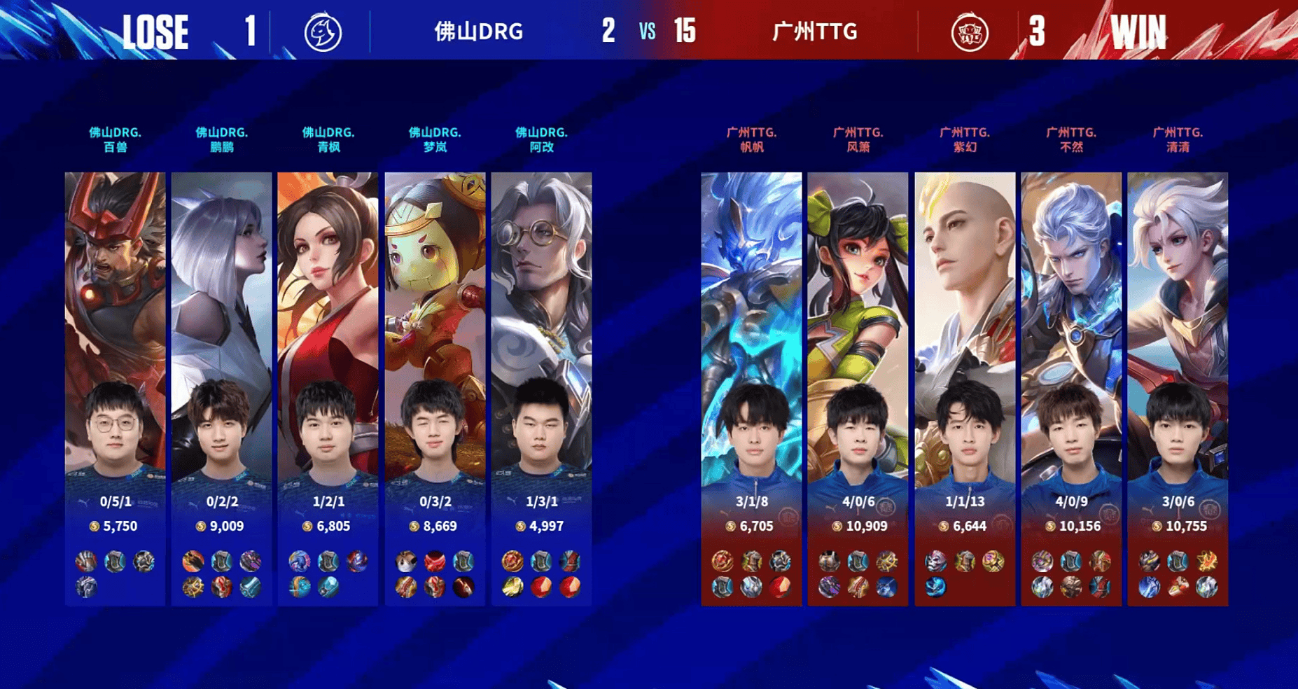 佛山DRG 0-1 广州TTG,本场选手表现你打几分?