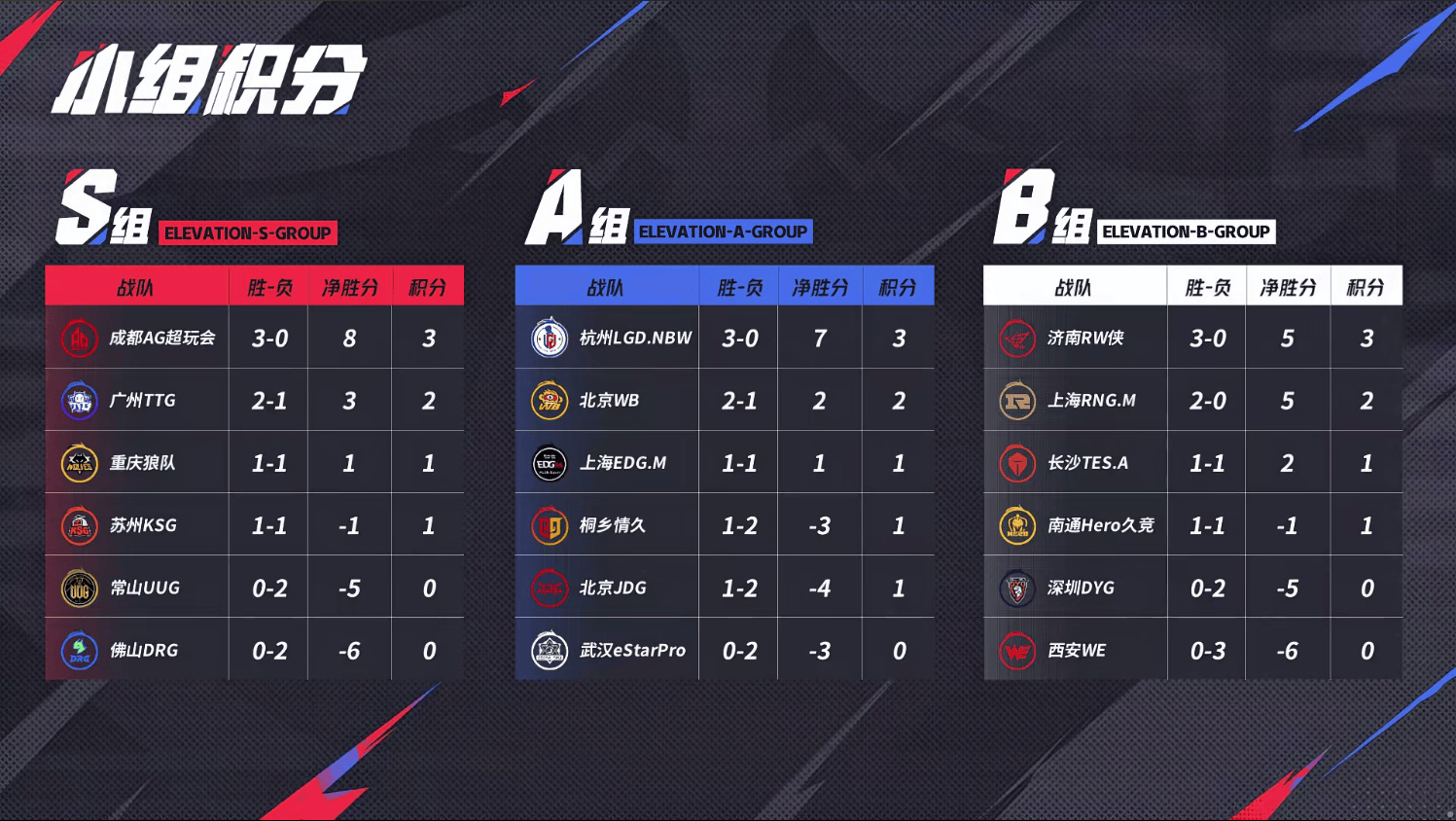 [赛果]AG/TTG/狼队S组前三,清融高居MVP榜第六,WE难求一胜